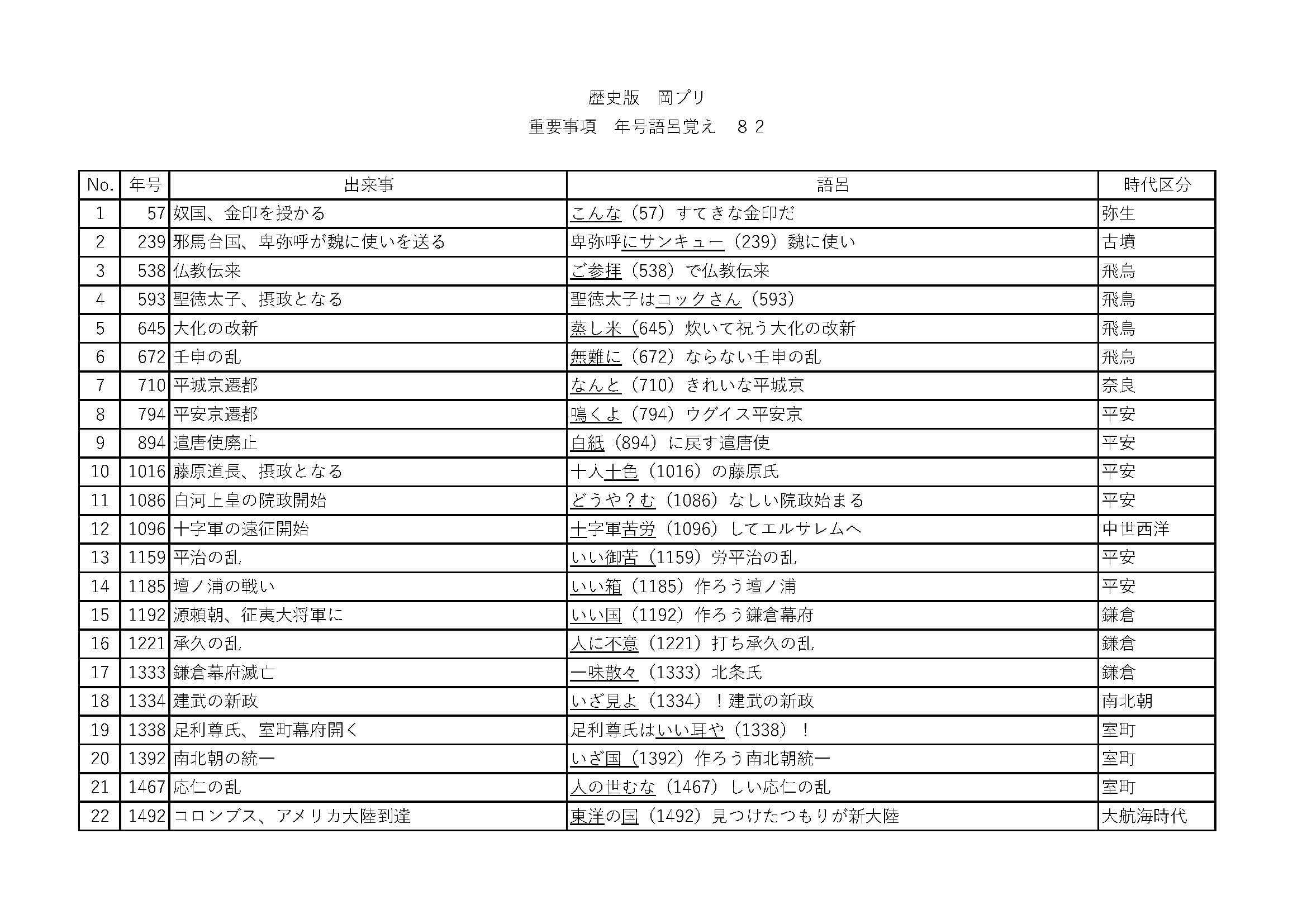 歴史版 岡プリ 重要事項 年号語呂覚え 82