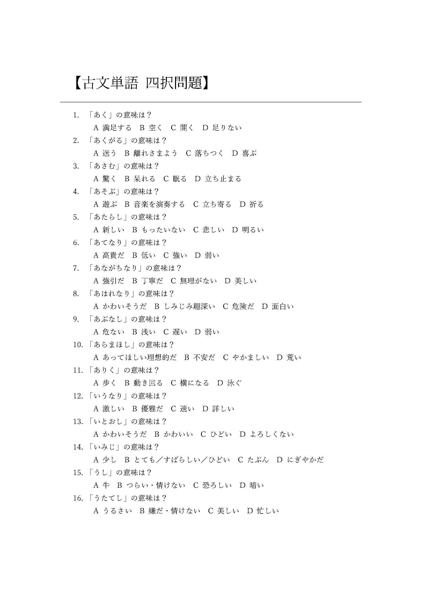 【紹介文】古文の最大のネックは現代語訳にできないことです。理由は主に2つあり、1つは文法がわからなくて意味は取れない、そしてもう1つは単語の意味がわからなくて意味が取れない、です。このテキストでは2つ目の理由である、単語の意味がわからないを解決していきます。
